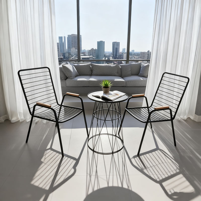北欧风铁艺桌椅组合 简约阳台休闲小桌椅 家用网红小茶几三件套