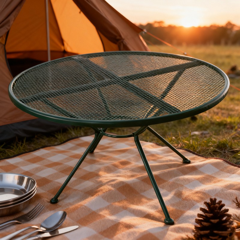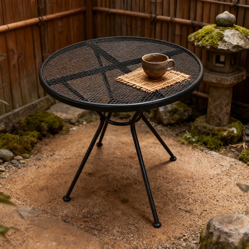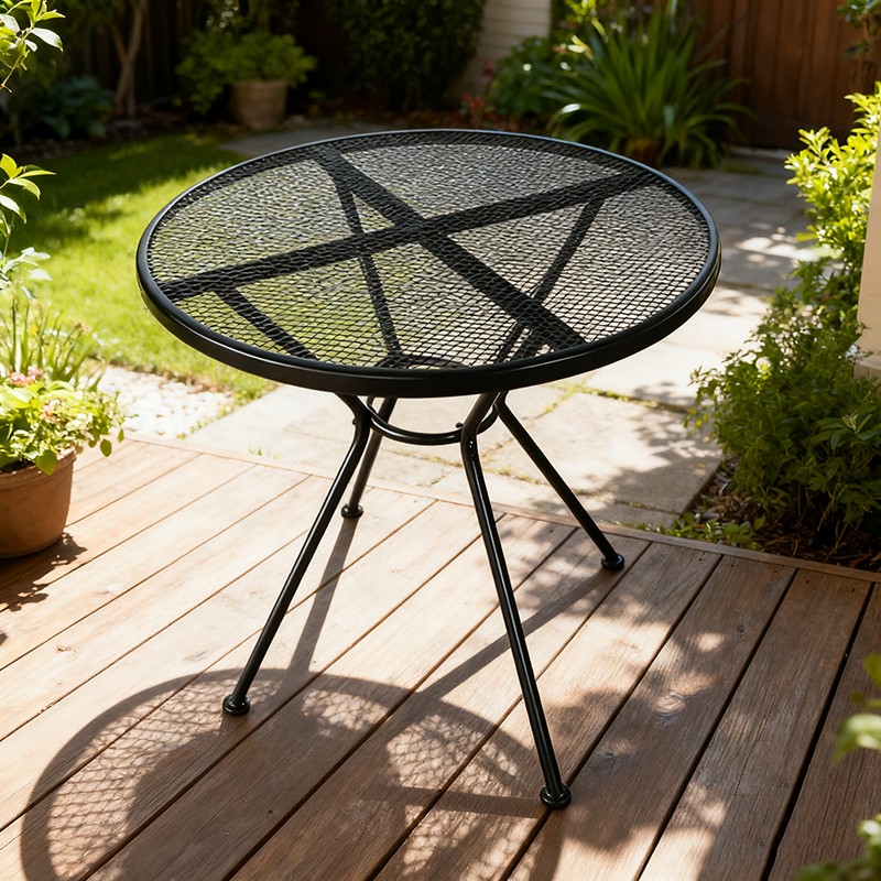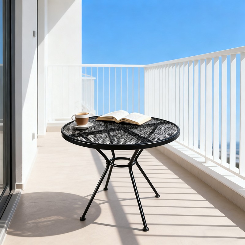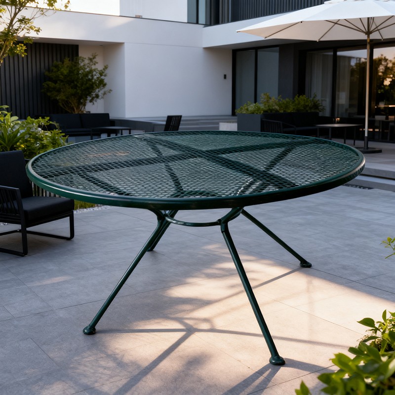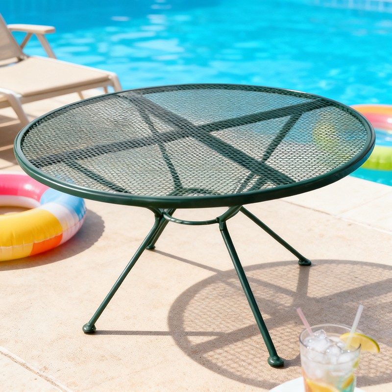 北欧风户外网片圆桌 家用露台轻便餐桌 室外防腐防生锈网面圆桌