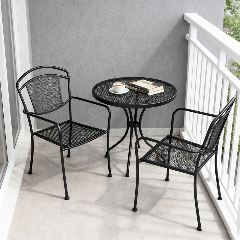 户外铁艺网格休闲椅阳台庭院简约靠背扶手椅家用商用防锈透气金属椅