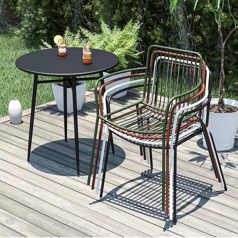 工业风铁艺桌椅三件套 户外休闲阳台小桌椅组合 简约现代庭院洽谈桌椅