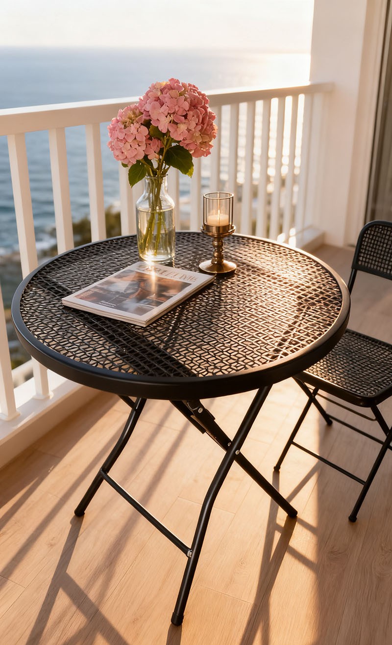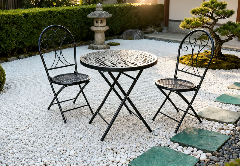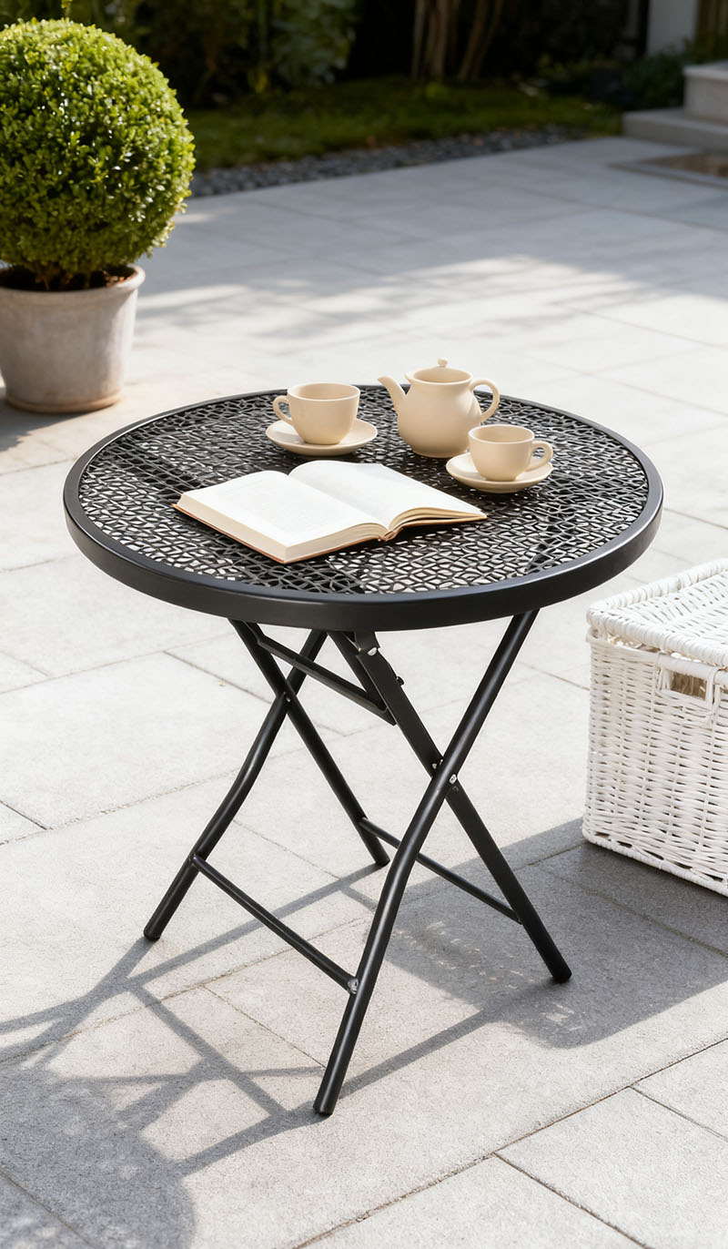 Iron Mesh Folding Table and Chair Set, Balcony and Courtyard Leisure Table and Chair, Outdoor Waterproof and Sunproof Portable Folding Outdoor Table and Chair