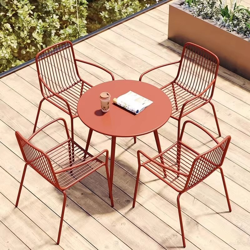 Industrial-style iron furniture set of three (table and chairs) - outdoor leisure balcony small table and chair combination, simple and modern courtyard negotiation table and chairs